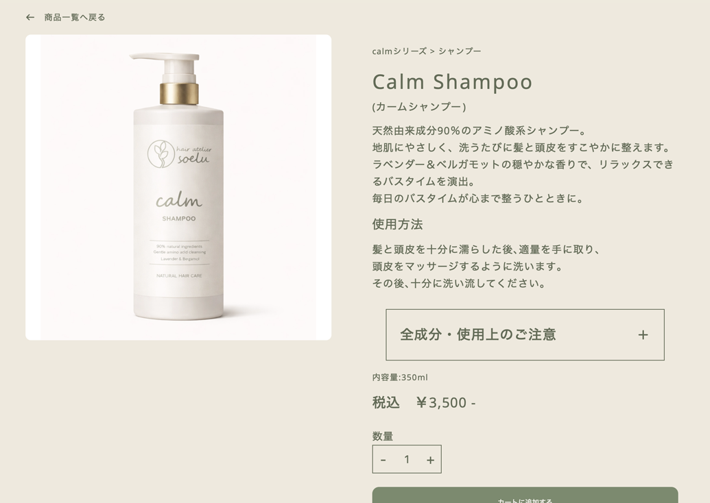 キャッチコピー: 「今日が少し、やさしくなるように。」 (髪をととのえて、気持ちもふわっと。 soelu は、そんな“やさしい時間”を届けます。)