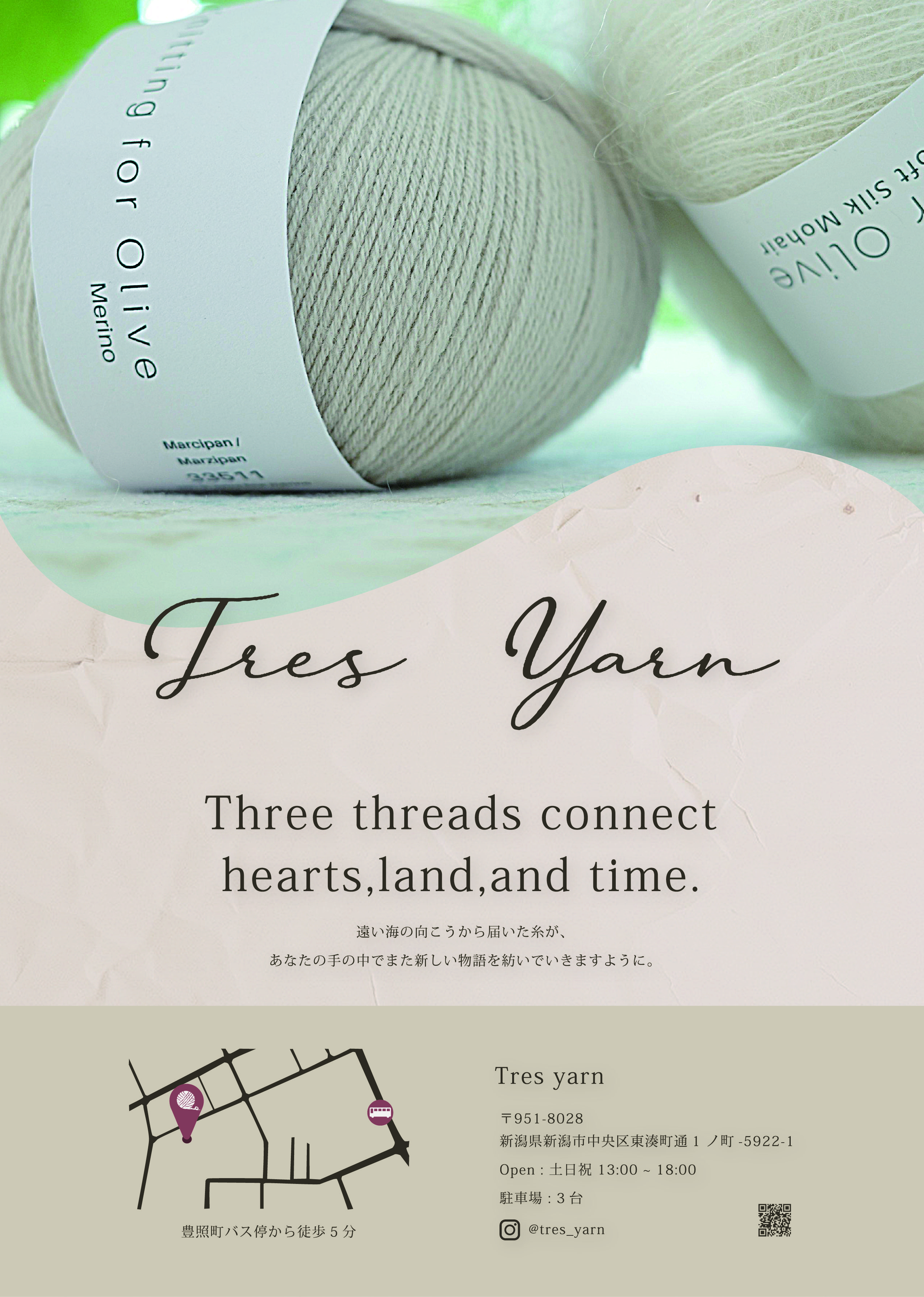 新潟に実在する海外毛糸販売店 「Tres Yarn」を題材にしたチラシデザイン (個人制作)。